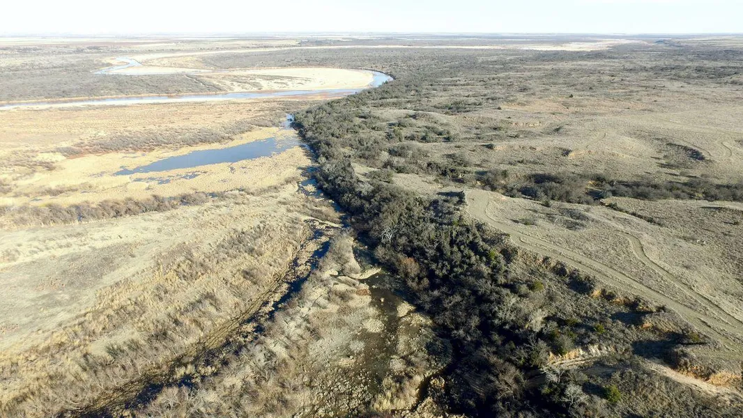Terrain: This Wilbarger County property is a premium North Texas recreational, hunting, and cattle ranch! From the beautiful views of the distant Wichita Mountains in Oklahoma to the shaded hollow areas along the steep red bluffs, there are so many great attributes to this Wilbarger County River Ranch. Because of the changing vegetation throughout the Red River bottomland, the thick hardwood lined bluffs, and the food plot areas above, wildlife of all sorts are found throughout the property. It is very common to see large numbers of whitetail deer and turkey on the winter wheat field that lines the top edge of the bluffs. These deer travel from the dense hardwood thickets that line the bottomland and the tall grassy meadows with scattered plum thickets and other underbrush which extend to the riverbank. The large hardwood thickets and groves are also home to flocks of Rio Grande Turkey. It is not uncommon to see groups of turkey coming to and from their roosting home. The hardwood areas on the Red River property are comprised of hackberry, cottonwood, chinaberry groves, elm, mesquite, and a few scattered cedar trees. The large tree groves and thick hollow areas offer perfect bow hunting opportunities. Wildlife trails are very common throughout these dense areas and it would be easy to view game at close range. Cattle also do well on the ranch with the sub-irrigated bottomland and cultivated wheat pasture fields. Waterfowl hunting is prime on this property due to the large amounts of surface water and the ability to also flood others areas with the existing irrigation wells. Just below the massive red bluffs ranch are several large year-round spring fed pools and seeps that continually keep fresh water easily accessible for wildlife and livestock. These huge slough areas could be deepened or customized into a particular duck slough or pond. Hiking, exploring, four wheeling, and horseback riding are a few other recreational activities that are ready to be enjoyed at the Wilbarger county Ranch!