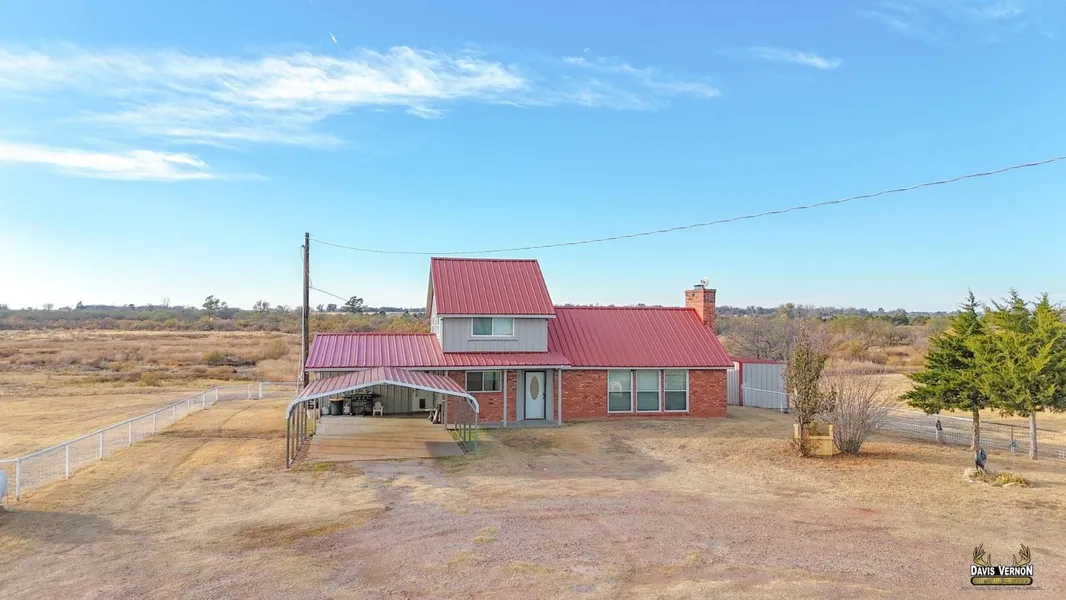 Beautifully maintained home on 20 acres just south of Vernon is updated and ready for its new family! Lovely 3-bedroom, 2 bath two-story home offers 2100 square feet of comfortable living space and is located on pastureland with several useful outbuildings. The brick and metal exterior house open into a large, bright, and inviting living room with a classic brick woodburning fireplace. The cozy master bedroom with wooden built-ins and two closets is just off the living room. The master has an en-suite bathroom that has a beautiful large stone-tiled shower. The kitchen has undergone recent renovation (late 2024) and includes soft touch cabinetry and quartz countertops surrounding a farmhouse sink. That functional sink is under a large window overlooking the back yard and peaceful pastureland beyond. The kitchen includes a stove, microwave, dishwasher, and pantry. Look carefully into the pantry for a secret storage area! The second bedroom is just off the kitchen. The kitchen leads into the tiled hallway. The second bathroom, with new tub and tiled wall shower, is just off the hallway. The hallway leads to the 2-car carport and the amply functional utility room. The large utility room includes conveniently placed washer and dryer hookups and lots of wooden shelving. The cellar door is also in the utility room. The third bedroom is up the stairs to the right off the living room and includes a closet and another door to more storage in the upper part of the house. Many windows offer a brightness to this charming farmhouse. The back door opens to a patio that looks out at the white fencing and pastureland surrounding this amazing property. Ample storage space abounds in this home and the surrounding buildings. A large barn and large metal workshop are on the property to the north of the house. A chicken coop, horse stalls and tack room, fenced and backyard storage buildings are also on the property. This property includes twenty acres of prime hunting land. Various wildlife, including deer, roam the property and are readily available to the avid hunter. This wonderful property with house and other buildings is ready for new ownership.