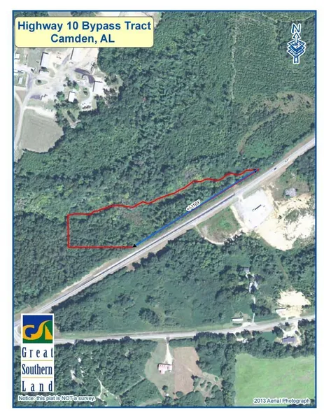 66-054 Highway 10 Bypass Tract - This property is located just west of the town of Camden, the county seat of Wilcox County, as noted on the attached plat map. It lies on the north side of State Highway 10 Bypass and features approximately 1,100 feet of road frontage. There is a small stream on the property that forms the north boundary. The primary potential use of the tract is as an industrial site since there is a business located directly across the road. The topography limits the amount of land that could be developed, but there is sufficient land for a business site.