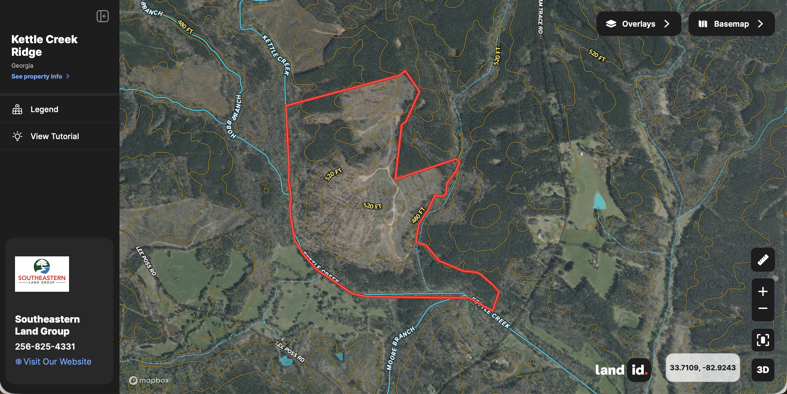 Kettle Creek Ridge is a recreational hunting and timber investment property with fantastic potential. Located in game-rich Wilkes County, Georgia that is famous for its high deer density. Terrain is gently sloping. Pine timber was clear cut in 2024-25. Hardwoods remain along Kettle Creek and in watershed drainages. Excellent deer and upland game hunting. Interior road is maintained and navigable. Entry into the property from Bartram Trace Road is via deeded easement.