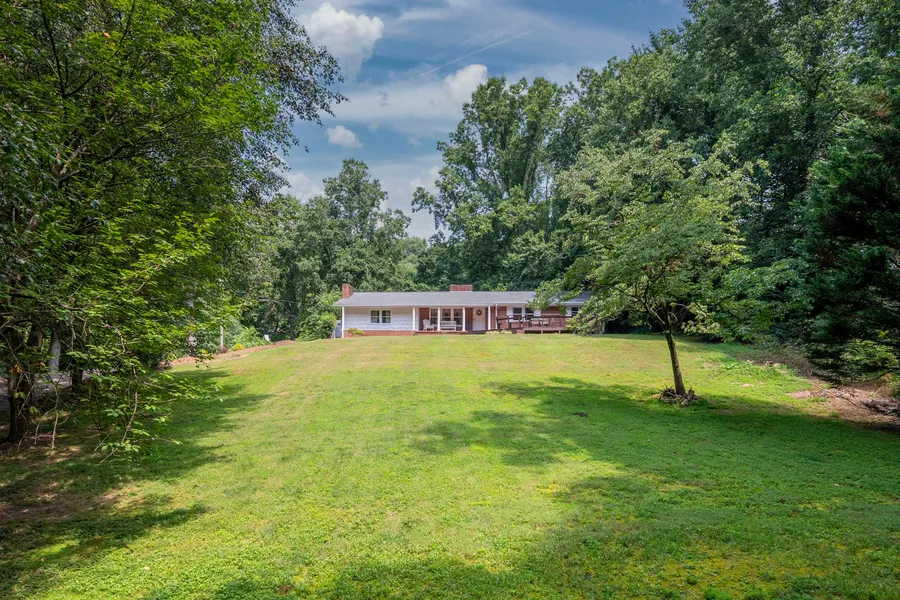 NEW PRICE - Brick and cedar shake ranch nestled on a private 2.44 acre parcel in peaceful setting, placed back off the road. Lovely covered front porch with deck extension overlooks a large front lawn. Relax by a cozy gas log fireplace in the living room. Gather in quaint dining room just off the spacious kitchen with beautiful glass-tile backsplash, pantry, and stainless steel appliances. A centrally located laundry closet is just off the kitchen. Stunning hardwoods in living room and all bedrooms. The primary bedroom has a beautiful cedar-lined closet. Just off the dining room is a wonderful recreation room featuring a gas log fireplace and double French doors. Extra storage area in unfinished basement. Two car attached and two car detached carports and storage building for your outdoor storage needs. Freshly painted exterior. This home has many updates!