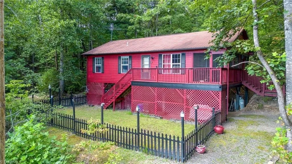 “This charming red home stands out; its bold exterior pairs beautifully with its natural surroundings. Tucked away in the mountains of North Carolina, this property is great for outdoor enthusiasts. The area offers endless opportunities for hiking, hunting, ATV riding, and more. This 2-bedroom, 2-bathroom home sits on over 7 acres of land. The living area boasts a beautiful stone wall with a gas log heater, creating a cozy and inviting atmosphere. The primary bedroom features a free-standing electric fireplace, adding a touch of luxury and warmth. The recently added primary bath includes a spacious walk-in shower, a separate toilet closet, and plenty of closet space. Step outside to enjoy the abundant wildlife, take in the views from the deck. The screened-in porch offers an ideal spot for relaxing while soaking in the natural beauty. Whether you’re drawn to its classic farmhouse feel or...