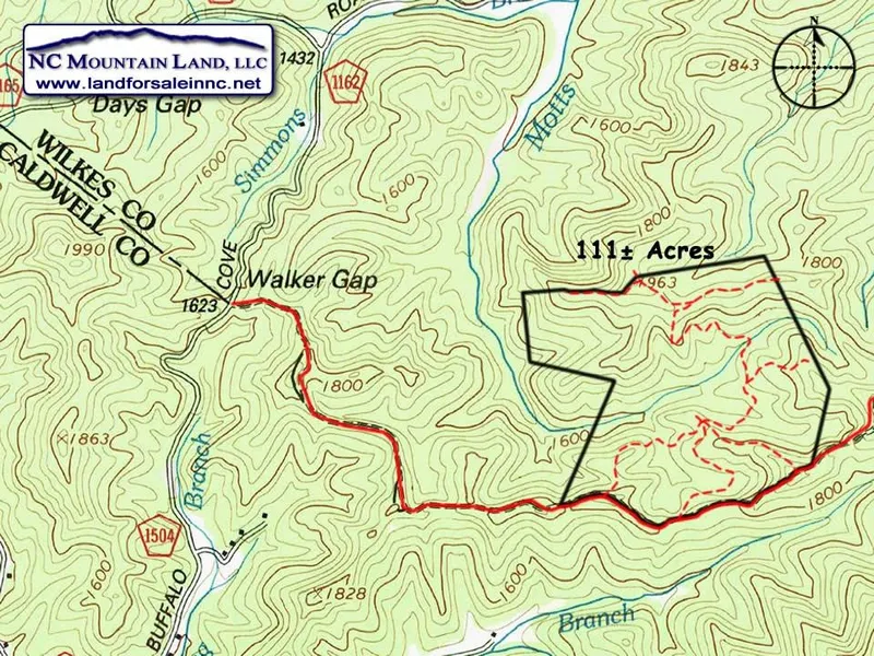 This heavily wooded parcel is located in a remote area of southwest Wilkes County, but it is fairly easy to get to from US Highway 321 and Buffalo Cove Road in Caldwell County. Most landbuyers request mountain land offering lots of privacy, seclusion, springs, potential views, hunting opportunities, small areas potentially suitable for planting vegetable gardens or food plots for wildlife, but don't want to drive too far to get to it. This beautiful hunting land for sale in NC is less than 1hr-30min drive from Winston-Salem at I-40 & NC Hwy 421, or Gastonia at I-85 & NC Hwy 321. Logging roads provide access to different areas of this property. If you enjoy hiking, ATVs and are looking for great outdoor opportunities to enjoy with family and friends, this may be the perfect land investment for you. If you require a water feature, here you'll find the headwaters of Motts Creek, springs and small branches, and there's even a small woods pond that attracts lots of our local wildlife. Although the County Line Road is referenced in the public records as serving as a right-of-way to adjacent lands, the Seller makes no representation as to the legal use of said road. Buyer to verify zoning restrictions based on intended property use. Property acreage, taxes, location, boundary lines and right-of-way information is subject to verification by Buyer prior to purchase. Although this property has been previously surveyed, buyers are advised to consult a surveyor prior to purchase. The last home off the county line road is about a half mile from the subject property.