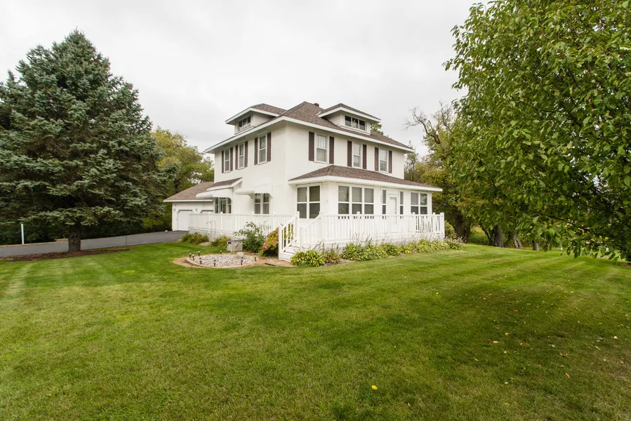 Beautiful historic home with original woodwork and maple flooring, formal dining room with a wall of windows and built-in buffet, updated kitchen w/white cabinetry and built-in desk! Pocket door separates the living room and formal dining, main floor laundry, bath, mud room w/laundry. Den and 3-season wrap around porch complete the main level. 4 bedrooms up and full bath. ''Many updates''.