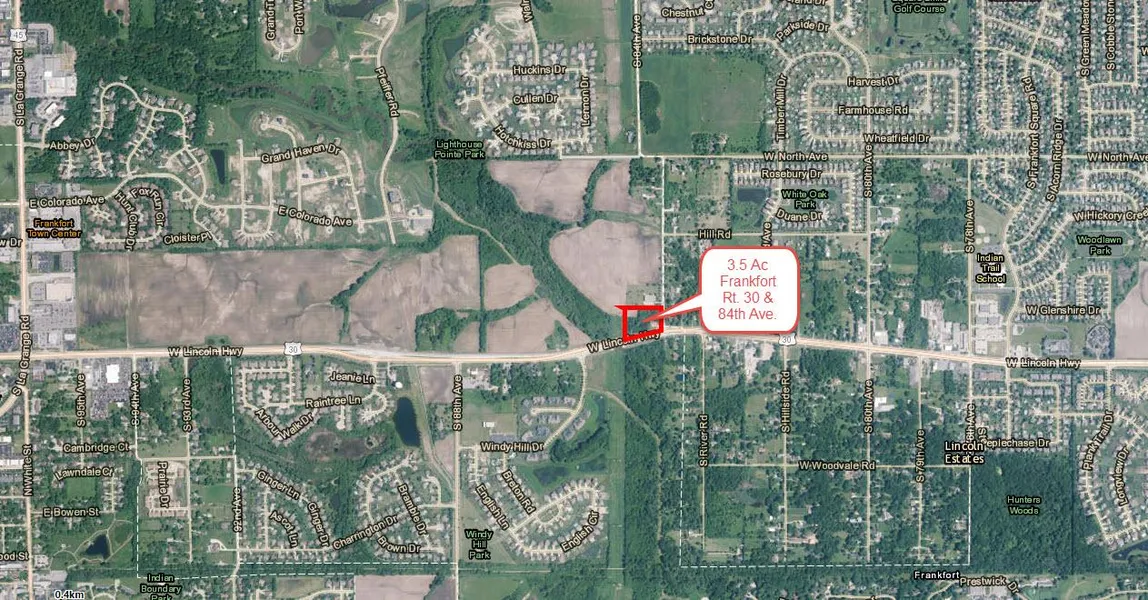Potential 3.5 acres commercial corner in Frankfort, IL. Site is located at the corner of Rt. 30 (Lincoln Highway) and 84th Avenue, between La Grange Road and Harlem Avenue. Many potential uses.