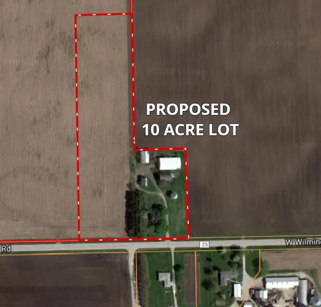 Very nice homestead available in Wilton Township. Frontage on Wilmington-Peotone road. Proposed 10 acres configured has 554 feet of frontage and includes two machine sheds, garage and grain storage. Newer machine shed is 104X60 with concrete floor. House is a tear down.