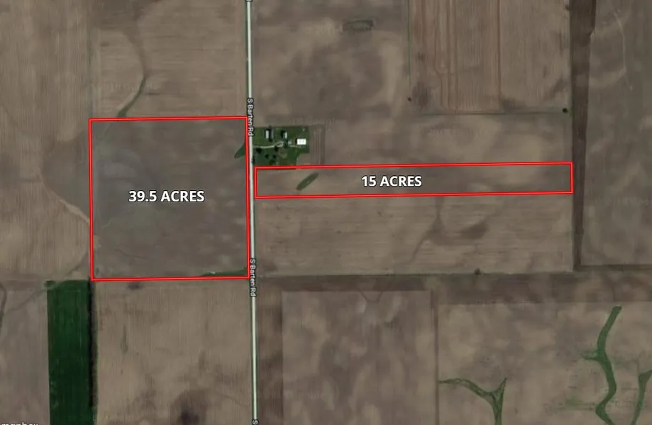54.55 Total acres in Manhattan Township, Will County. The parcel is in two pieces. 39.5 acres on the West side of S. Barten road and 15 acres on the East side of S. Barten road. Good soils, high and dry farmland. Parcels can be split. Peotone School district.