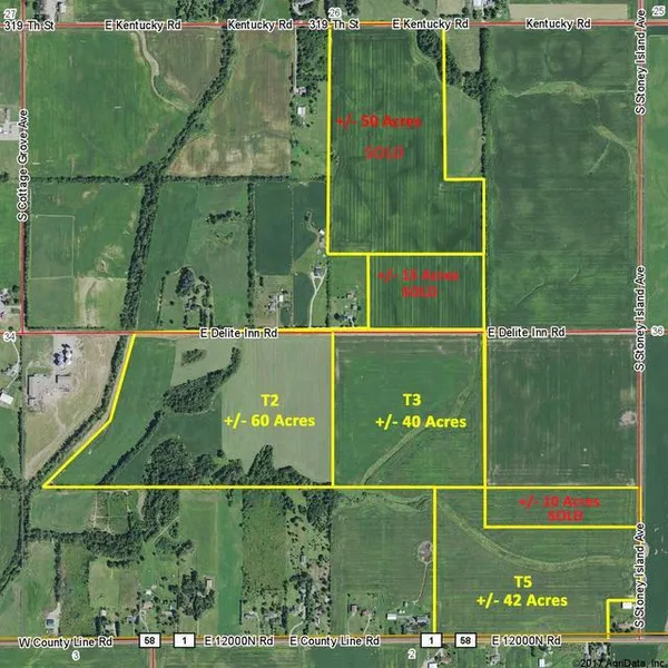 T3: +/- 40 acres, with +/- 39.40 acres tillable, 114 PI. The northern boundary of the farm has frontage on East Delite Inn Road.