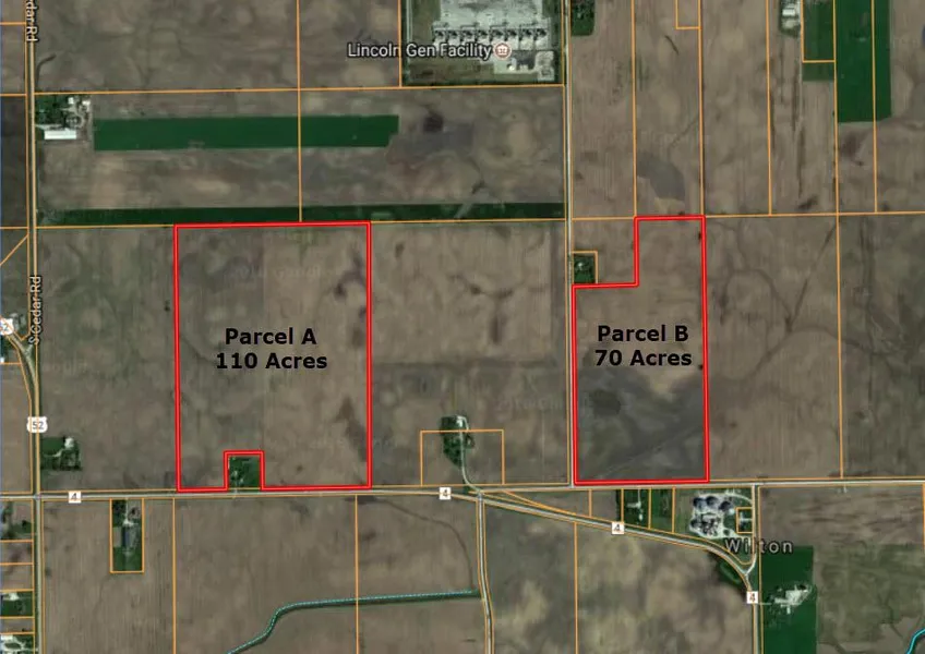 Two very nice parcels within half a mile of each other for a total of 180 acres. 110 Acres with blacktop frontage and 70 acres to the east on the corner of Offner & S. Kankakee. Good soil PI numbers, 124.9 on 110 acres and 125.3 on 70 acres. Parcel B has a potential solar lease.