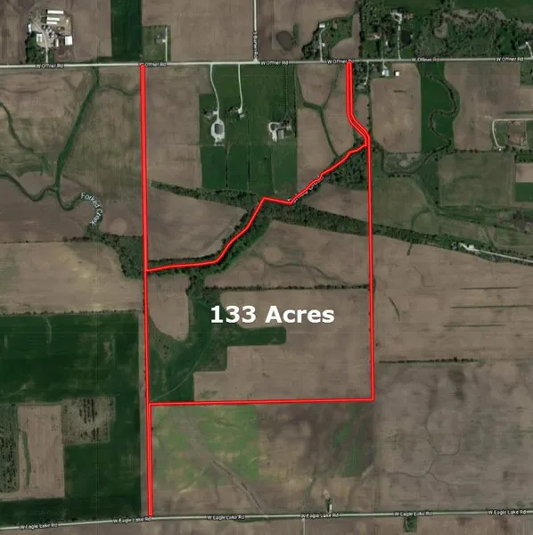 133 Acres with a nice combination of tillable farmland acres and timber/creek acres. The property is grandfathered by Will County for flag lots. The County will allow two building permits on this farm. There are access points on Eagle Lake Road and W. Offner Road. Rolling hills and creek make this an ideal location for family get-a-way, recreational or secluded estate home-site. Good soil PI on the approximately 86 tillable acres.