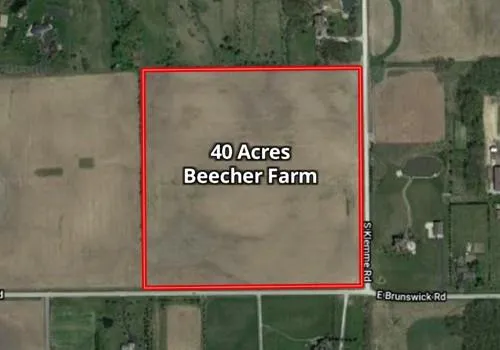 This productive relatively flat 40 acre Beecher farm is located at the NW corner of the intersection of Klemme Road and East Brunswick Road in the Village of Beecher, Will County, IL. This property is 1 mile west of the Illinois Indiana border.