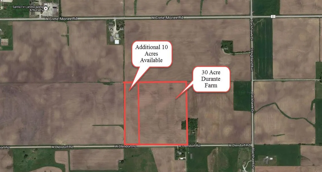 30 acres on Olendorf Road in Monee. The farm sits outside of the potential Peotone airport foot print. Nice investment parcel. Additional 10 acres available to purchase.