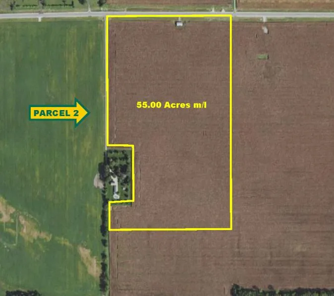 55 acres, m/l, located on the south side of Manteno Rd. (Will Co. Hwy. 8), which his a hard surface, two-lane striped road. Parcel contains an est. 54.81 crop acres with a P.I. of 121.3.