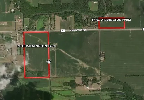 This 95 acre farm is relatively flat with a soil PI of 113.9. There are two parcels located approximately 3800 feet from each other. The main parcel is 78 acres and the second parcel is 17 acres. The 78 Acres is at the SW corner of S. Byron Rd and W. Manteno road. The 17 acres is approximately half a mile east and would make an excellent building site. Near the Kankakee River State park. Approximately 2300 cars pass by daily. The owner is willing to split the 95 acre into a 17 & 78 acre parcels.