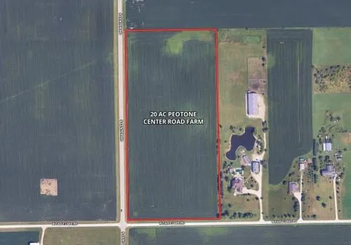 Research Parcel Information20 acres level farmland available at the corner of S Center Road and W Eagle Lake Road northwest of Peotone, IL for continued agriculture production or possible residential/mixed use development.