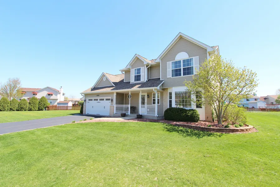 Amazing 4 bed, 2.5 bath home w/full finished basement on a cul-de-saq in desirable Hunter's Crossing! Spacious Fairfield model w/gleaming BAMBOO FLOORS throughout. Foyer welcomes into the Living Rm w/bay window & flows into Dining Rm. Open concept between Kitchen & Family Rm w/views of the backyard. Kitchen features stainless appliances, beautiful tile backsplash, ample counters, pantry, table area, & deck access. Opening then to Family Rm w/vaulted ceilings & gas fireplace. Upstairs, large Loft overlooks Family Rm. 3 Bedrooms on 2nd flr share a full bath. Master Suite has vaulted ceiling, dual closets, private full bath w/double sinks, & jetted tub/shower. Rec rm in basement, w/laundry & more storage. HUGE deck that's partially covered, w/natural gas hookup, & a hot tub! Yard w/fire pit, playsets & shed. Neighborhood amenities offer walking/bike paths, fishing ponds, & playgrounds! CHANNAHON SCHOOLS, Park District, State Park, Forest Preserve, Public Golf Course & MORE! CALL TODAY!!