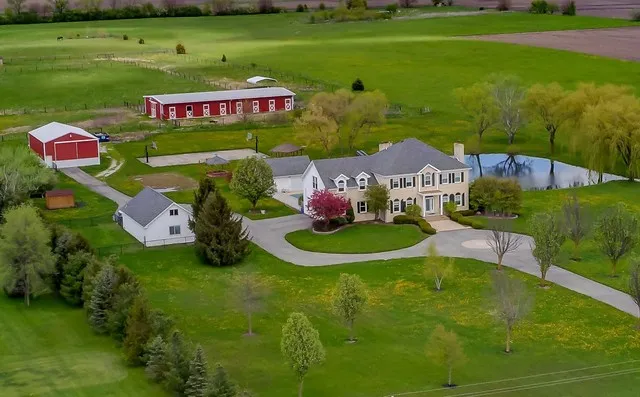5 ACRES - TREE-LINED DRIVE LEADS YOU TO A LUXURY HOME WITH INGROUND POOL, 2ND-DETACHED GARAGE, OUTBUILDING, BASKETBALL COURT & POND. 2-story Southern Plantation Style home with Brick Front. Total of 5,00 finished sq ft. Hardwood Floors, Tray Ceilings, Crown Molding, Built-Ins & Wet Bar. Cozy Kitchen: Granite Counters, Stainless Steel Appliances, Double Oven & Viking Cook Top. Eating Area with adjacent bar area overlooks back deck & pool. 2 Master Bedrooms (one features a sitting room that could also double as an exercise room or nursery) both with walk in closets. 2 Master Baths...with jacuzzi tubs & separate showers. Large 3rd & 4th Bedrooms. Finished Attic with Full Bath. Finished Basement with Beautiful Oak Bar, Game Room, Rec Room & Full Bath. In-Ground Pool & Pool House with Full Bath & Kitchenette. 3-car Detached Garage has office area & finished loft space. Pole Barn is 30x48x14 w...