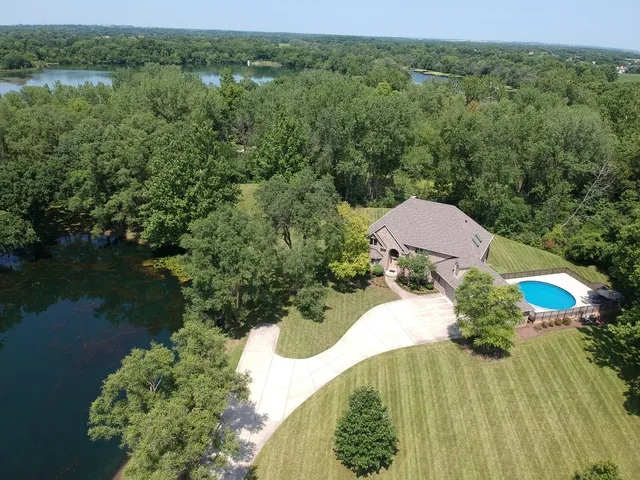 Never a bad day when you are greeted by this winding drive canvased with pond views from your private sanctuary. Set on 8.6 acres w/nature settings in every direction. Beautiful brick 2-story home offers 4620 sq ft of resort style living. Large kitchen w/custom cabinetry, island w/cooktop, planner's desk, walk-in pantry & gleaming hardwoods. Adjacent, vaulted family room w/stone fireplace & floor-to-ceiling windows spilling natural light. Pass thru window to screened-in-room offers pool access. Den has main level bedroom potential w/closet & full bath. 4 upper level BR's & 3 full BA's. Dream master retreat w/cocktail options in sitting area, fireside or private balcony. Spa inspired bath has dual sinks, jetted tub, skylights & separate shower. Cozy respite w/tv (definitely your happy place!) allows pass thru to large walk-in closet. Full basement, zoned geothermal system & security system. Grab your fishing pole, stocked pond complete w/waterfall! Includes two more buildable lots.
