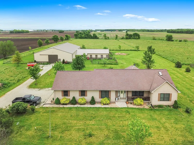Horse Lovers Dream property on 10 acres with creek, featuring 10 stall barn with attached 120' x 60' indoor riding arena with heated viewing area! Each stall has a dutch door to a paddock area and the barn has 2 water spigots and electric. In addition, there is a large fenced turn-out area/riding arena and a 5 acre fenced pasture/hay field. The 4 bedroom, 3 full bath ranch home has an open floor plan with vaulted ceilings featuring a floor to ceiling 2-sided wood burning fireplace. The kitchen features an island with seating, under-cabinet lighting, stainless appliances, including a gas stove and opens to a large dining area with patio doors to a 10 x 20 covered deck with propane gas hook-up for your grill! The attached garage has hot and cold water and leads to a spacious mud room with laundry area with sink, coat closet and storage cabinets and closet, as well as a full bathroom. There...