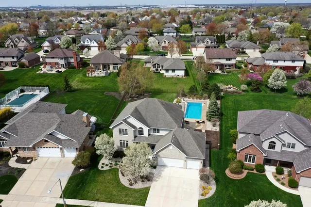 OUTSTANDING 2 Story in Wildwood subdivision!! Vacation at home with the HUGE yard, amazing inground pool and covered sitting area! From the moment you walk up to the relaxing front patio, you'll know that you've found the right house! Enter in to the 2 story foyer and be welcomed by the large formal living room and dining room with hardwood flooring. Continue through to the large eat-in kitchen with stainless steel appliances, newer cabinets, and island w/breakfast bar! Big family room with brick, wood burning - gas fireplace. A resort-like fenced in backyard features the NEW 41' x 16' salt water heated in-ground pool (2018) that is 6'8" deep with several LED lights, auto-cover, & gas fire bowls around, concrete patio with pergola, firepit, and professional landscaping! The full finished basement boasts a HUGE rec room, terrific wet-bar with 2nd fridge, exercise or 5th bedroom or exercise room with large closet, plus a full bath! A grand master bedroom showcases a tray ceiling, sitting area, big walk-in closet, and a master bath with whirlpool tub & double sinks! 3 more bedrooms on the second level have lots of closet space. Main level office and laundry room. 3 car heated garage, sprinkler system, 9' ceilings on main level, newer hot water heater, concrete driveway, and so much more! Don't miss out!! Lincoln-Way Central high school and New Lenox grade schools.