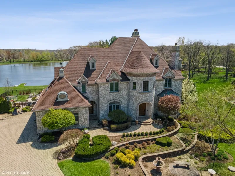Exceptional Custom stone home truly one of a kind in desirable Evergreen a gated community. Inspiring estate with expansive 3 finished levels of living space -app.10,000 sq ft. Amazing Open floor plan with soaring ceilings, uncompromising quality & attention to every detail. Grand foyer with winding staircase, formal living room with fireplace, dining room with butlers pantry , office/study with custom wood work & fireplace. Grand Family room with wall of windows, built is bookshelves & fireplace. Gourmet Kitchen with Gorgeous custom cabinetry, island, top of the line stainless steel appliances, granite, wet bar, pantry and spacious eating area. 2nd floor- Large Master bedroom with fireplace, balcony, 2 walk in closets. Ultra bath with double sink, whirlpool, separate shower. Additional 4 spacious bedrooms with their own private baths. Amazing Walk out finished english basement with recreation room with fireplace, two game room areas, theatre room, exercise room, wine room, bedroom with full bath, kitchenette area and custom Sauna. Elaborate and breathtaking private yard with luxury custom pool, multilevel custom tile patios, deck & extensive landscaping, perfect for entertaining. Private pier on the serene pond, brick paver driveway, heated 3+car side garage, 5 fireplaces , walnut & brazilian cherry flooring. The list of upgrades and amenities is very extensive, so please schedule your own private showing today! Minutes to Rte 355, shopping, etc