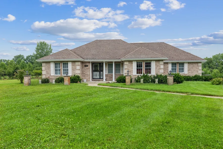 WELCOME to your private estate. Tucked privately off of Bemes Rd. this 6.57 acre parcel offers a spacious all brick ranch home with a 3 car attached garage, and a 36 x 57 pole barn. Over 5,000 finished sq. ft. This amazing 3 bedroom 3 bath home, has a unique floorplan. Main floor living, with a loft/office upstairs; overlooking the living room and family room, which has a fireplace. The finished walk out basement, has a rec room with an additional fireplace, and 2nd kitchen. Outside, a covered patio area, great for entertaining. The pole barn is partially fenced, perfect for a paddock. Generac generator completes the package.