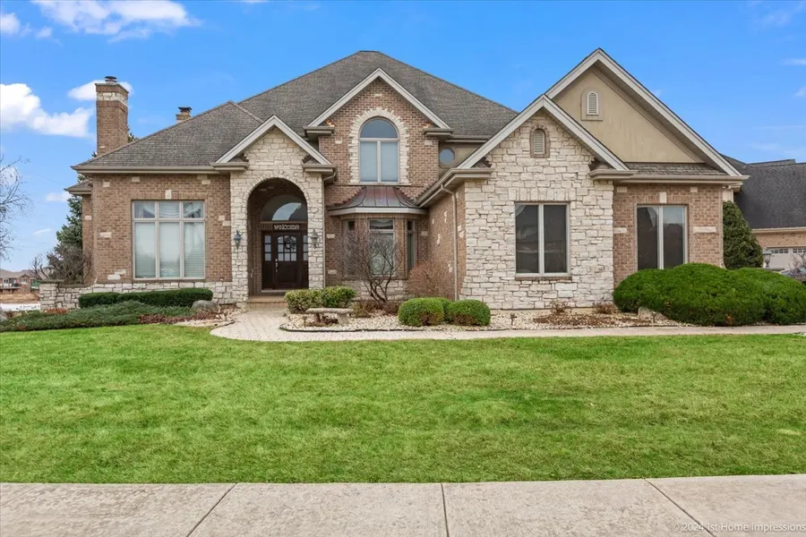 Panoramic pond views and meticulously landscaped grounds showcase the picture-perfect traditional elegance of this home. This house, situated on a one-acre lot, boasts a superb design and functional layout, creating a comfortable living environment. A finished walkout basement with heated floors includes a private covered grotto outside. Picture yourself relaxing in your private backyard paradise, with an in-ground pool (conveniently covered automatically) and a patio ideal for entertaining. This is a perfect addition to any home and is excellent for entertaining guests year-round. The interior is equally impressive, featuring custom ceilings, crown molding in every room, a private office ideal for work, a gourmet kitchen with top-of-the-line appliances, expansive granite counters, and plenty of custom cabinetry. The artisans flawlessly completed the lower level, which included a second family room, a recreation room, a fifth bedroom, a full bathroom, and ample storage. Add: Three fireplaces, beautiful hardwood flooring throughout, dual washers & dryers, all bedrooms with walk-in closets and bath access! Three plus car side load heated garage. The list goes on... Close to bike paths, popular downtown Frankfort, and Lincoln Way Schools. One acre of land next to the property is also available. Please note that we also offer the furniture available for sale.