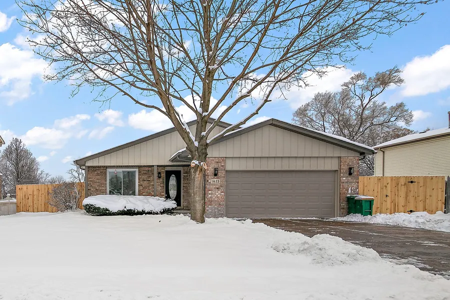 Experience elevated ranch-style living in this completely updated 3-bedroom, 2-bath Lockport home offering 1,779 sq. ft. of impressive design and comfort. From soaring ceilings to premium finishes, every detail has been curated to deliver a move-in-ready experience. The brand-new kitchen features oversized white cabinetry, quartz countertops, stainless steel appliances, and a spacious layout that opens effortlessly into the family room-complete with a cozy, modern fireplace. Throughout the home, you'll appreciate all new 2-panel doors, updated trim, fresh paint, and fully adjustable lighting, creating a cohesive, modern aesthetic enhanced by brand-new windows that fill each space with natural light. The primary bedroom is a true retreat, offering vaulted ceilings, generous space, and direct access to an enclosed porch. The luxurious primary bath boasts a gorgeous walk-in shower and contemporary finishes, while both bathrooms have been fully updated with stylish tile and quartz surfaces. A full laundry room adds convenience and functionality. Outside, enjoy a massive fenced-in yard featuring a brand-new privacy fence-perfect for outdoor entertaining or future enhancements. The roof and major mechanical components are approximately 5-7 years old, offering added peace of mind. Located in a fantastic area within walking distance to Lockport High School, this move-in-ready home combines thoughtful design, modern comfort, and exceptional value. A rare opportunity-don't miss it!