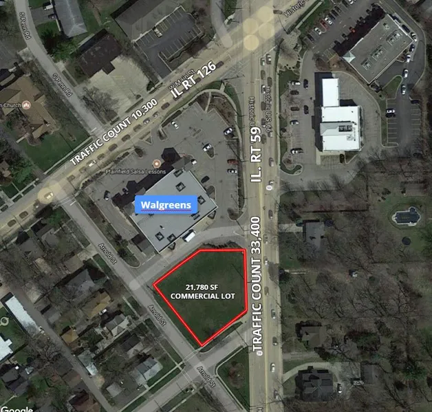 Half acre lot (21,780 SF) on South IL Route 59 in Plainfield.