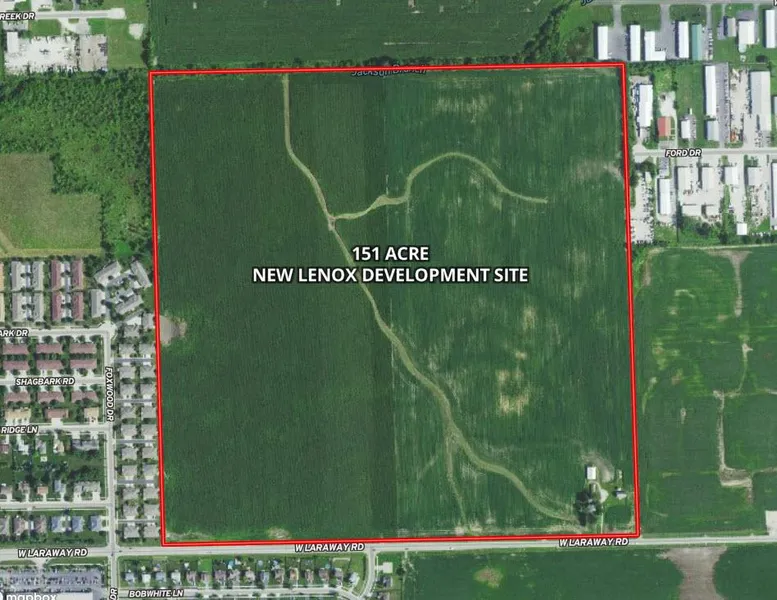 151 Acres in New Lenox, one of the fastest growing Southwest suburbs of Chicago. Excellent New Lenox grade schools and Lincoln-way high school. Both considered some of the best in the state. Frontage on Laraway road, just west of Cedar. Zoned agriculture, but comprehensive plan calls for mixed use residential allowing for higher density. Two Metra stations, Laraway road station is just half a mile east. The main station is at Cedar and Rt. 30 in New Lenox, about 2.6 miles north. Easy access to I-80, I-55, I-355 and I-57. Excellent shopping district along Rt. 30.