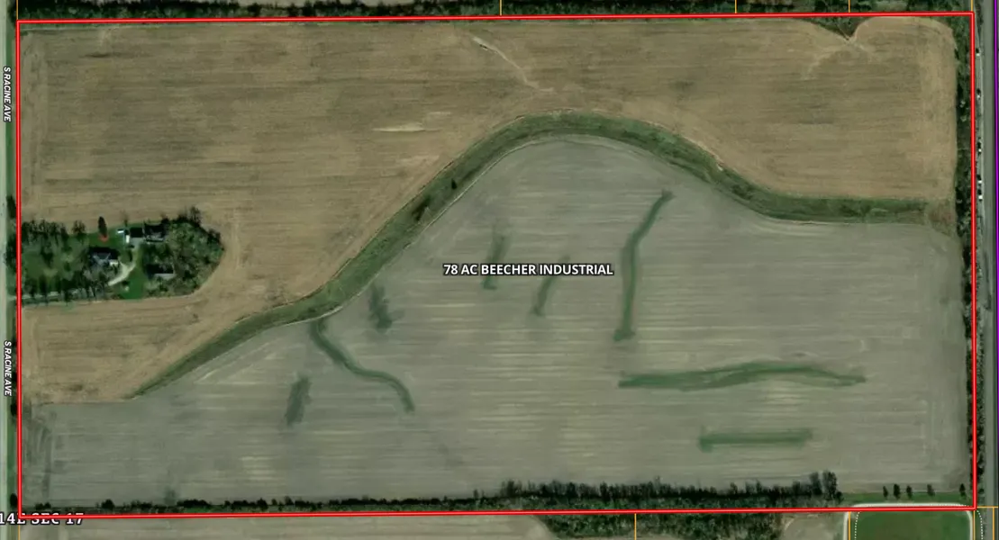 This 78 acre parcel is located in Beecher, IL off of S Racine Ave between W Church Rd and Miller St, with Union Pacific/CSX railway boarding the east of the parcel. While currently zoned agriculture, this site would be prime for, and rezoned for, industrial development and use. The property has access to utilities such as on-site city water (10" looped main, capable of 600,000/day), on-site electric (3-phase), on-site
