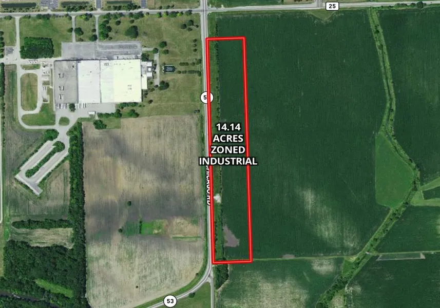 This prime 14 acre parcel is located along Rt. 53 in Wilmington, IL. In the 2021 zoning plan this parcel is Zoned B2 Light Commercial.