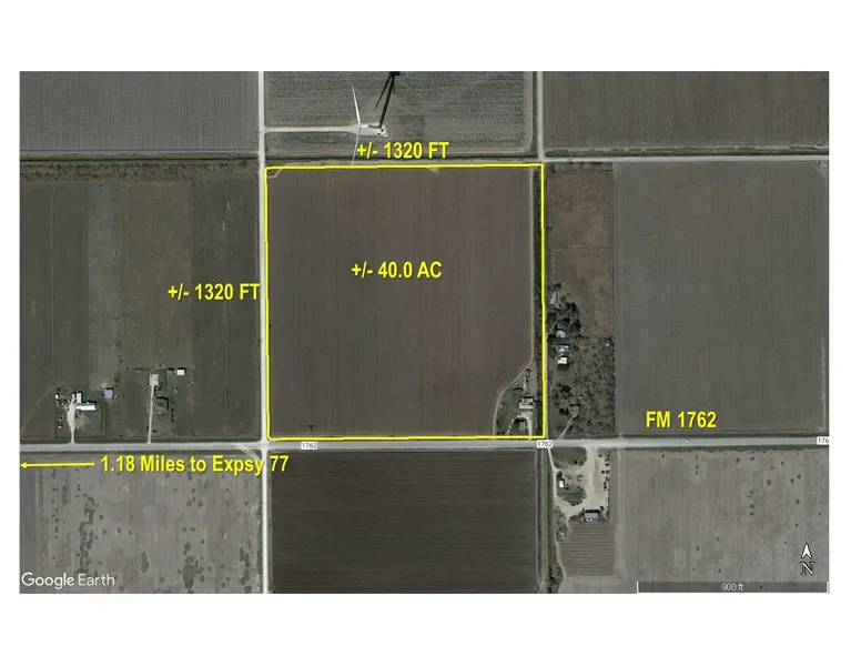 Level, irrigated farmland. Approx. 10 mins from expressway, 10 mins from city center. Property currently leased to an area farmer (sugar cane). Electricity and water available. Improvements and a small home on-site (need repair). Home has tenant, $350/mo plus utilities. North Alamo WSC. Corner lot: FM 1762 (paved) and Cemetery Rd (caliche).