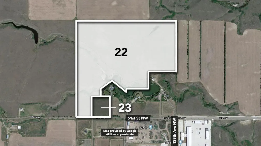 Auctions: 3:00 PM 10/8/2020 Nominal Opening Bid: SELLS WITHOUT RESERVE. Lot 22 Sells Individually 115+/- ac of residential development land located just minutes west of downtown Williston with frontage on 51st St NW. This property is part of a portfolio of land in Williston, ND. View all properties here Download flyer here Note: A Buyer's Premium (Buyer's Fee in WI) will apply for this property. Please see Terms of Sale for details. Broker Licenses: ND Philip Heiliger RE LIC 9300; Williams & Williams Mrktg Svcs, Inc. RE LIC 2952; Monte W. Lowderman AUC LIC 2040