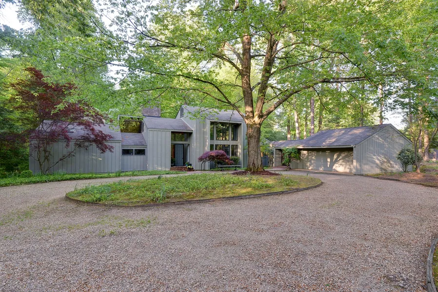 Nestled in the heart of the City of Williamsburg, convenient to The Shops, Restaurants, Farmers Market and Colonial Williamsburg, this beautiful Mid-century influenced contemporary home is privately situated on a 1-acre wooded lot in The Coves. The Living Room and entrance foyer feature Cathedral Ceilings and a wall of windows that bring the outside in. This tranquil setting also offers an updated and spacious first floor primary suite, newer windows, updated kitchen and bathrooms, wood burning fireplace and hardwood floors. The partially finished lower level, oversized garage, expansive driveway and low maintenance landscaping make for easy living with plenty of storage. Welcome Home!