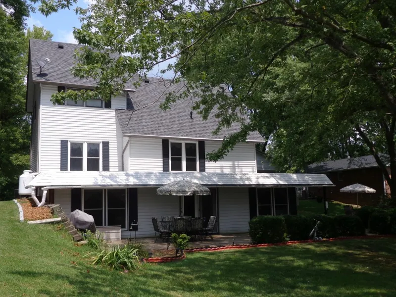 Home Warranty offered to new buyers. This large, waterfront home offers 5 bedrooms, 4 baths, family room, large kitchen, separate dining area, recreation room with wet bar and gas fireplace. Lots of closets and a large storage room! Asphalt drive with plenty of parking space; 2 car detached garage, 2 car covered carport with above storage; beautiful patio area for entertaining, or just relaxing!! Stunning lake view! In-ground sprinkler system to keep everything nice and green!