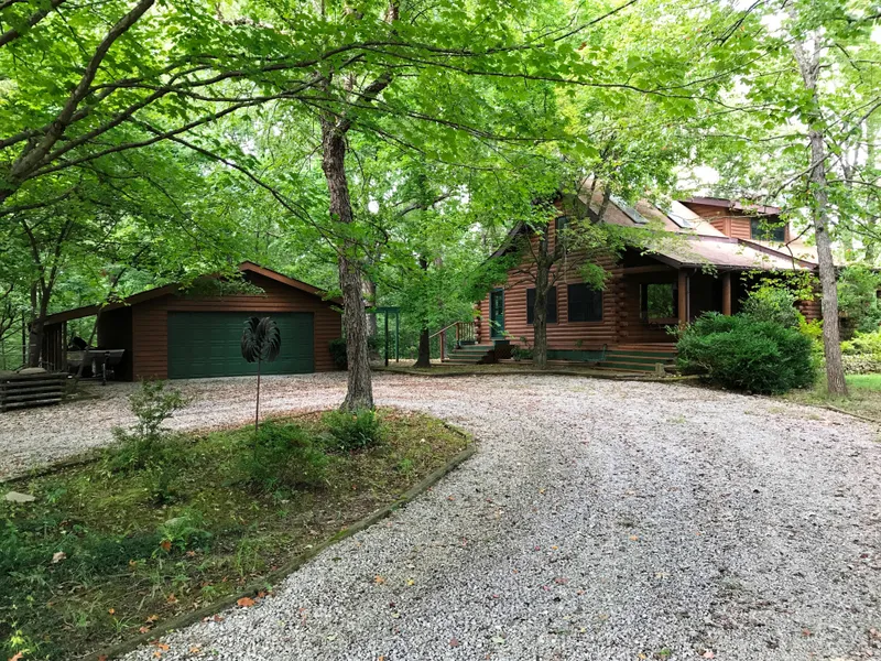 This rustic, custom built, log home for sale in Williamson County, Illinois is the perfect private setting for a weekend getaway or full time residence. The main floor has 1 bedroom, 1 full bath, eat in kitchen, a living room with vaulted ceilings and sky lights, and an enclosed sun room. The upstairs loft could be used as a bedroom or study, while the basement has another bathroom and is ideal for additional sleeping quarters or office.