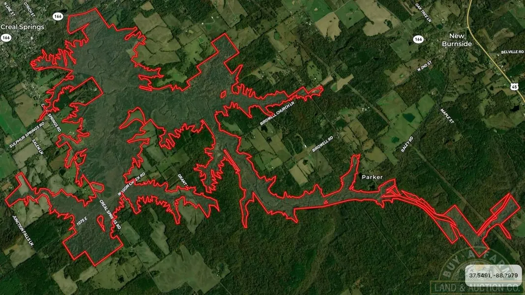 1870+- acres offered in its entirety, as one tract.Wooded creek bottom property located SE of Creal Springs IL in Williamson and Johnson Counties. The property is 5+- miles long and from 3 miles wide to a few hundred feet wide in other areas. It was originally purchased to the 510 & 504 MSL elevation and below for the purpose of creating a 1430+- acre lake to supply water for the rapidly growing City of Marion Illinois. You will find it to be a very rugged property with Sugar Creek meandering through it. Excellent Whitetail habitat!
