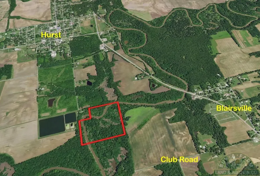 Directions from Blairsville IL: From the roundabout on IL Rt 149 at Blairsville, travel West on Club Road. Travel mile to the end of Club Road. Park here and walk North mile along the tree line to the property. Note: This is not a written easement but has been the entry point for past owners. Watch for signs.