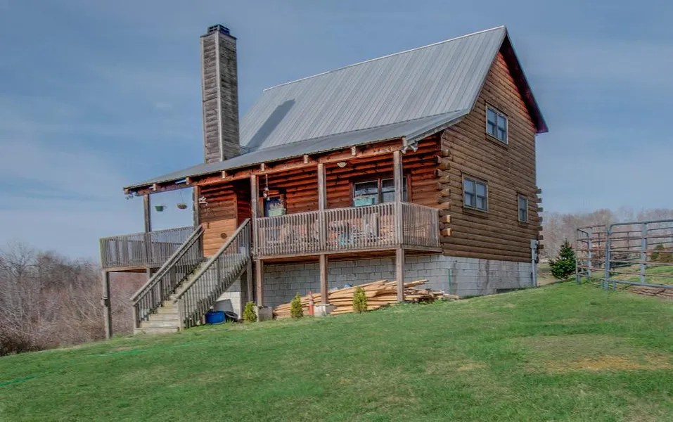 When you enter this Log Home you will feel a sense of warmth and comfort. The living area features a great fireplace for your enjoyment. This is an open design home which gives you total great use for entertaining or just enjoying family time. The vaulted ceilings add to the cozy feelings of this beautiful log home. There are two bedrooms and one full bathroom on the main level and master bedroom/bath are upstairs. All this combined with wrap around porches to really feel the beauty and views this farm has to offer.