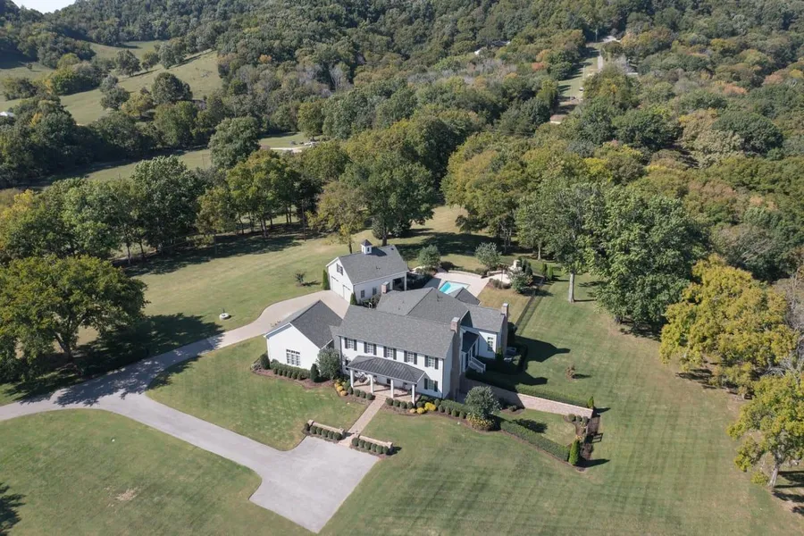 Less than 2 miles from I-840 in Thompson's Station, quiet Bennett Hollow Road dead-ends at the private, gated entrance to this 22-acre estate.
