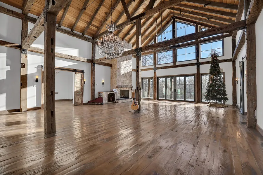 Seven acres in Franklin, TN with one of a kind new construction home. 5,400 sq ft of living space which includes 5 bedrooms and 5.5 baths. For those looking for outdoor living this home offers 1,500 sq ft of covered porches, 3000 sq ft of stamped concrete patios and deck with swim spa. Packed full of reclaimed materials and high-end stunning finishes. Grand kitchen and living area boast 28 ft high ceilings with beams reclaimed from a 150 year old Montana barn and westward facing floor to ceiling glass. Stone fireplace and entrance flooring imported from Turkey. White oak floors and red oak exterior. Bertazonni appliances with an additional second half-kitchen in the laundry/mudroom. Primary and guest bedroom on main floor. Three bedrooms, den and media room on second floor.