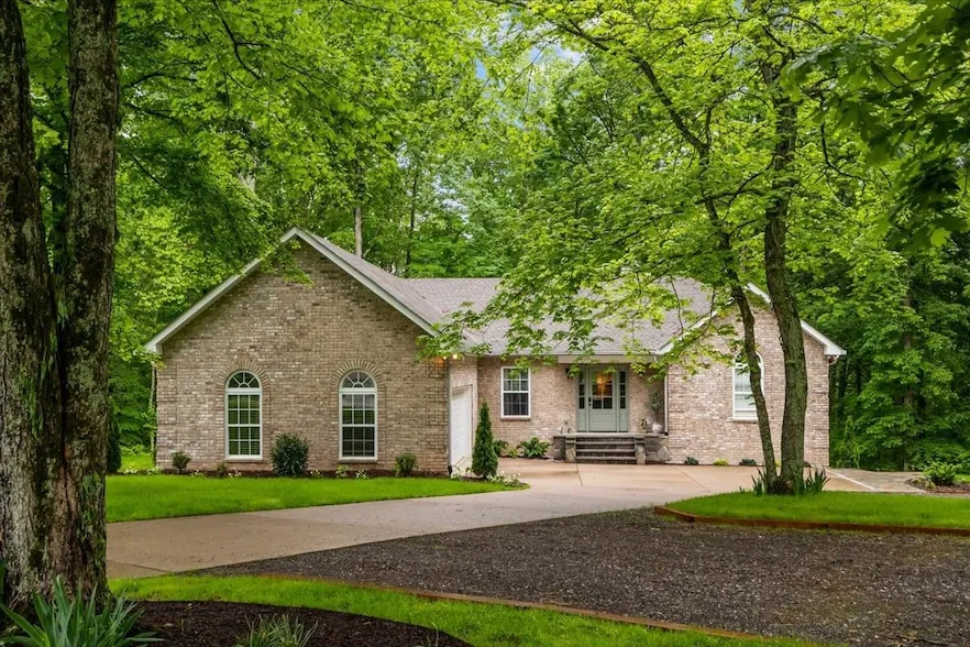 Stunning all brick recently renovated home with walk-out basement and multi-generational living potential! Nestled in a private, natural setting on 2.7 acres with mature trees and ample parking, this meticulously maintained home offers a versatile layout perfect for multi-generational living or entertaining. The main floor is bright and spacious! Sunlight floods the open-concept great room and kitchen, highlighted by vaulted ceilings, a gas fireplace, and a striking wood beam accent. The updated kitchen includes: quartz countertops & soft-close cabinetry, new fixtures & stainless steel appliances, a gas range, eat-in bay window nook, and a large island with bar seating. The primary suite has custom-built-ins in the walk-in closet, dual vanities, a renovated shower, and a separate soaking tub. A split floor plan ensures privacy, with additional bedrooms and baths thoughtfully placed. Huge laundry room off the 2 car attached garage. The fully finished walk-out basement serves as a true mother-in-law suite featuring full kitchen and laundry room, bedroom (septic permit for 3 bedroom) and full renovated bath, 2 flex rooms with closets that would make the perfect in-home office (ATT fiber internet), gym, or extra sleeping space. Theater/Recording Studio potential a flex room (closest to laundry room) with soundboard-insulated walls and ceiling. Storm shelter for added security. The sliding glass door leads to a peaceful screened porch perfect for enjoying the stunning views. Upstairs there is also a covered deck. No carpet! The seller installed high end LVP flooring throughout and gorgeous tile in the bathrooms. Roof 1 yr. 2021 HVAC in basement, city water, water heater 2022, new front door and stone steps. Located near the sought-after Fernvale community of Fairview, this home offers a private yet convenient location near Franklin, Leipers Fork, and Nashville. This home is truly move-in ready. A rare find!
