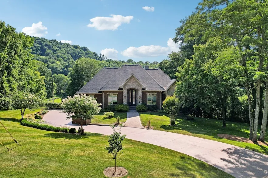 Price reduction for immediate sale! Over $300,000 Below Recent Appraisal! Stunning custom built countryside pool estate with barn nestled on 6 beautiful acres and easy access to Franklin. Entering the stately double doors of this well-appointed home, you will experience an open and practical layout that offers privacy for your family and functional living areas with convenience to everything this home has to offer. Whether you're relaxing on your lovely screened porch or floating in your recently updated pool, it's easy to enjoy this one of a kind setting surrounded by mature lush green trees, picturesque pasture views with a backdrop of rolling hills, cool afternoon breezes and unforgettable sunsets. This home provides the opportunity to settle in and take in your surroundings at every turn. The main floor includes 4 bedrooms, 3.5 bathrooms, living room, dining room, kitchen and office. The lower level features an expansive bonus room, pool bath (with urinal), 5 car garage (with lift), safe room and gun room. The pasture is completely fenced and barn has concrete drive access. Easy placement for an elevator, if one is desired. Home is now unfurnished.