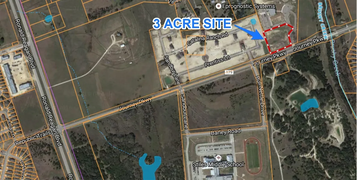 Research Parcel InformationFrom 183A toll road in Leander, take E Crystal Falls Pkwy. 2.5 miles turn right onto Ronald Reagan Blvd, 0.75 mi., then left onto Journey Pkwy.