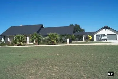 105 acres. GREAT home with beautiful backyard. Custom in ground pool and WAY TOO MANY amenities to list. Home overlooks stock tank and trees. Full of deer.