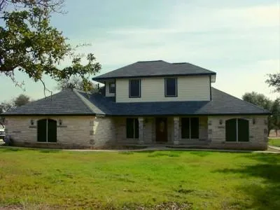 Builder's personal home on 20 acres with Bear Creek Frontage, 4 bedrooms, 3.5 baths, 2 car garage, designer touches such as custom maple cabinets, knotty pine interior walls and ceilings, 2 master suites, private office, jetted tubs in every bathroom, lots of hard tile flooring, huge fireplace, Liberty Hill schools and more! Call 866-302-LAND for more information!