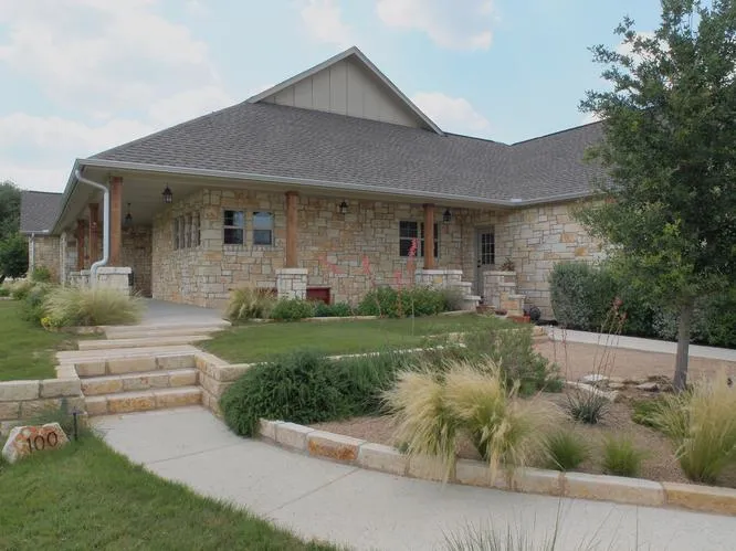 Pristine custom home located in Gabriel's Overlook. Three car garage. Beautiful landscaped yard with irrigation. L-shaped covered front porch wraps around home. Plantation style front door, handscrapped solid wood floors. Gourmet kitchen, oversized butcher block center island accented by drop lighting, sage solid wood cabinets, glass tile backsplash. Double ovens, gas five burner cooktop. Walk-in pantry, quartz/granite counters. Rough cedar beams, main living areas.