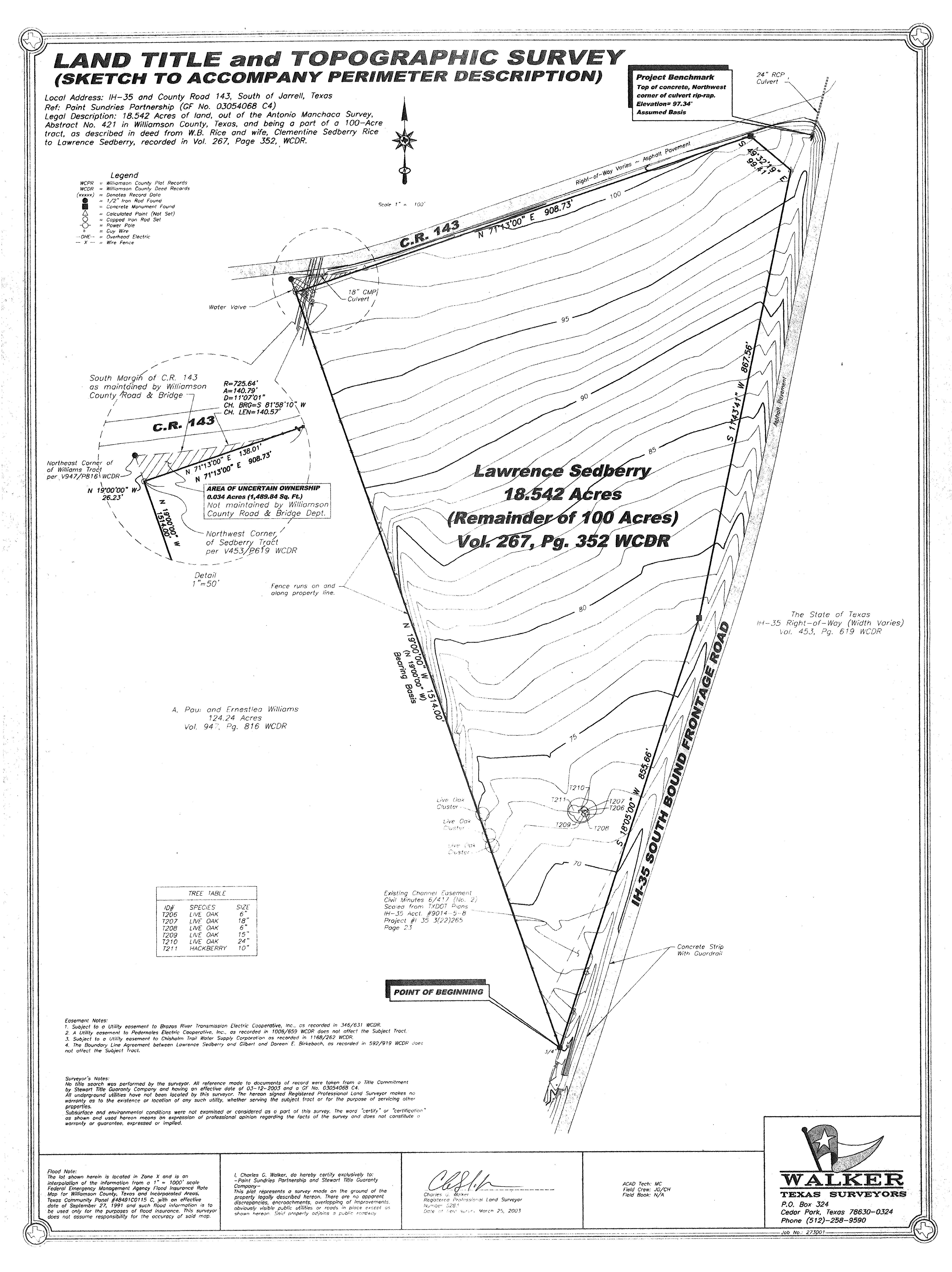 Research Parcel InformationLocated on the South bound feeder road of IH-35 and County Road 143. Pie shaped tract. Access from CR 143.