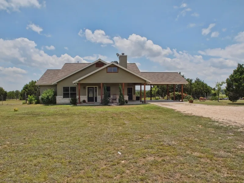 Beautiful custom home on over 14 private acres! Enjoy peace and quiet in this open floor plan home that offers 3 bedrooms, 2 baths, and features covered front and back porches, easy to maintain stained and scored concrete, granite counter tops, crown molding, custom wood cabinets, corner tub with separate shower, and stainless appliances. Outside you can enjoy the detached shop/garage, porches, and garden area. Kids will attend the highly acclaimed Liberty Hill schools just minutes away!